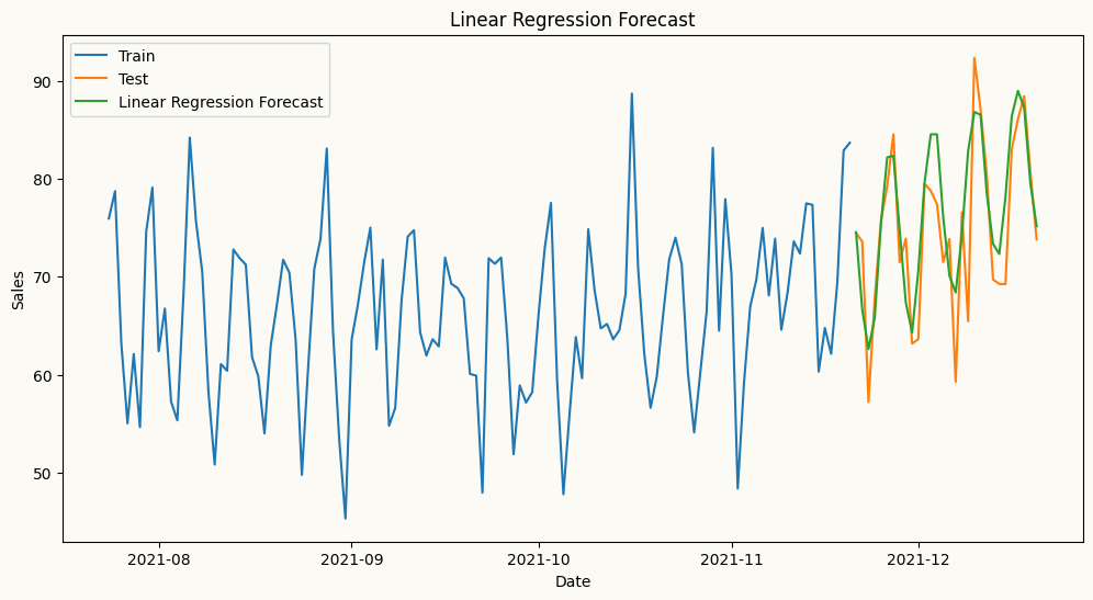 lgb = ml_forecaster(target_col="sales", model=LGBMRegressor(n_estimators=100, random_state=42, verbose=-1),