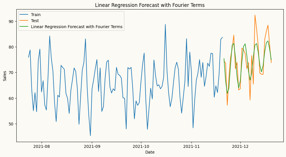 # ml forecast using Linear Regression with fourier terms as exogenous variables