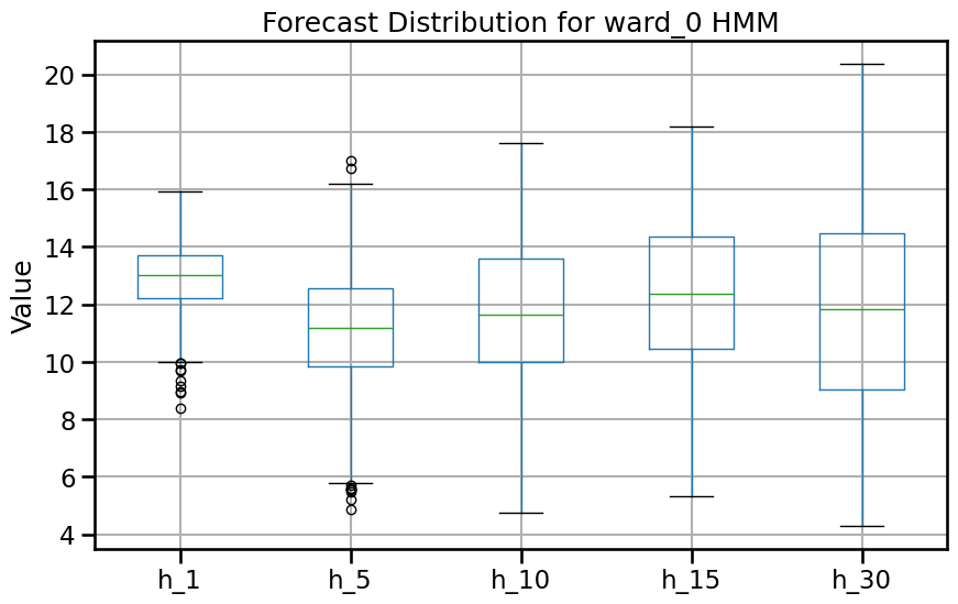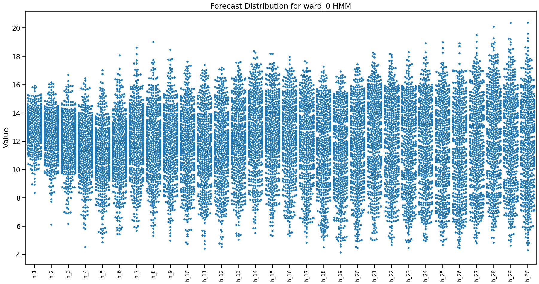 plt.title("Forecast Distribution for ward_0 HMM", fontsize=20)