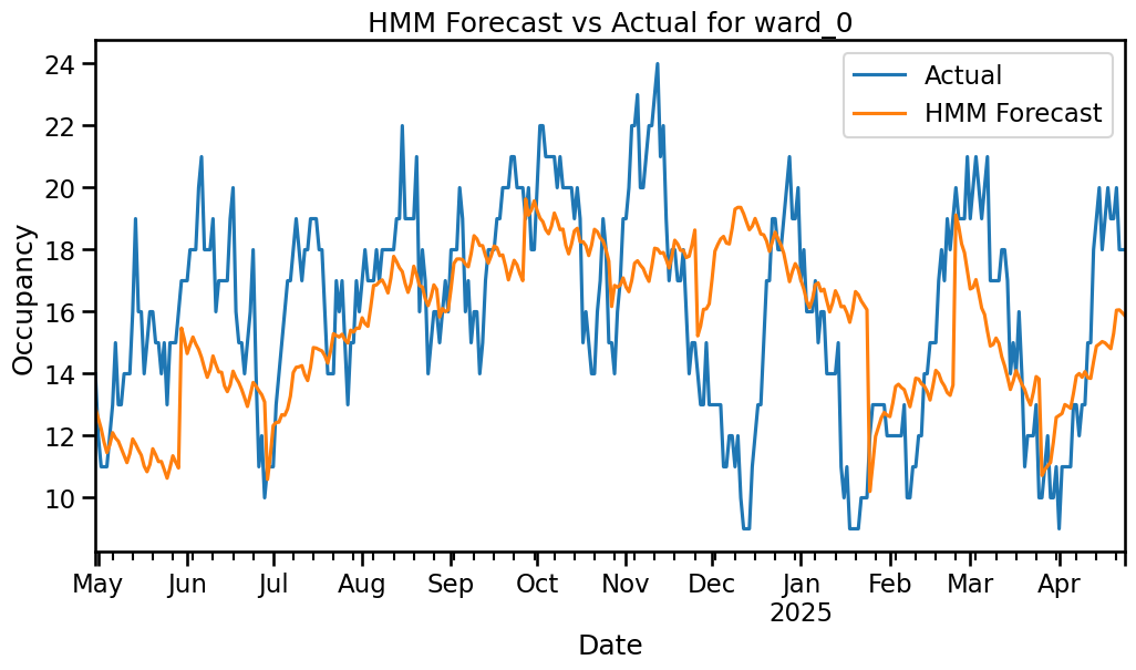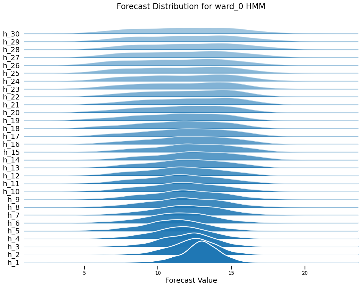 train_size += Hstate_probs = np.concatenate(state_probs_list, axis=1) point = hm_model.forecast(30, test_df.drop(columns=["ward_0"]))