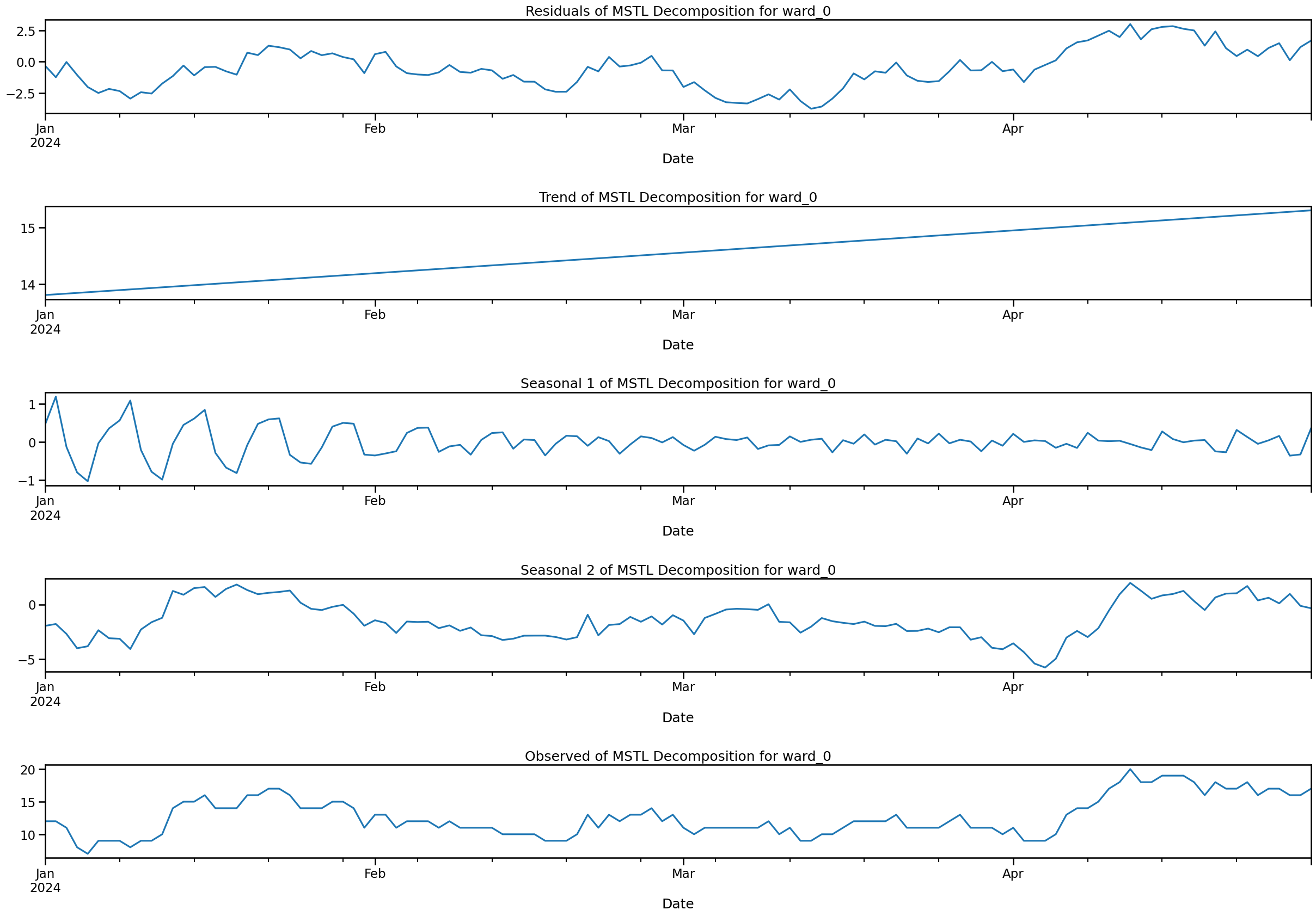 decomposition.observed['2024':].plot(title='Observed of MSTL Decomposition for ward_0', ax=ax[4])