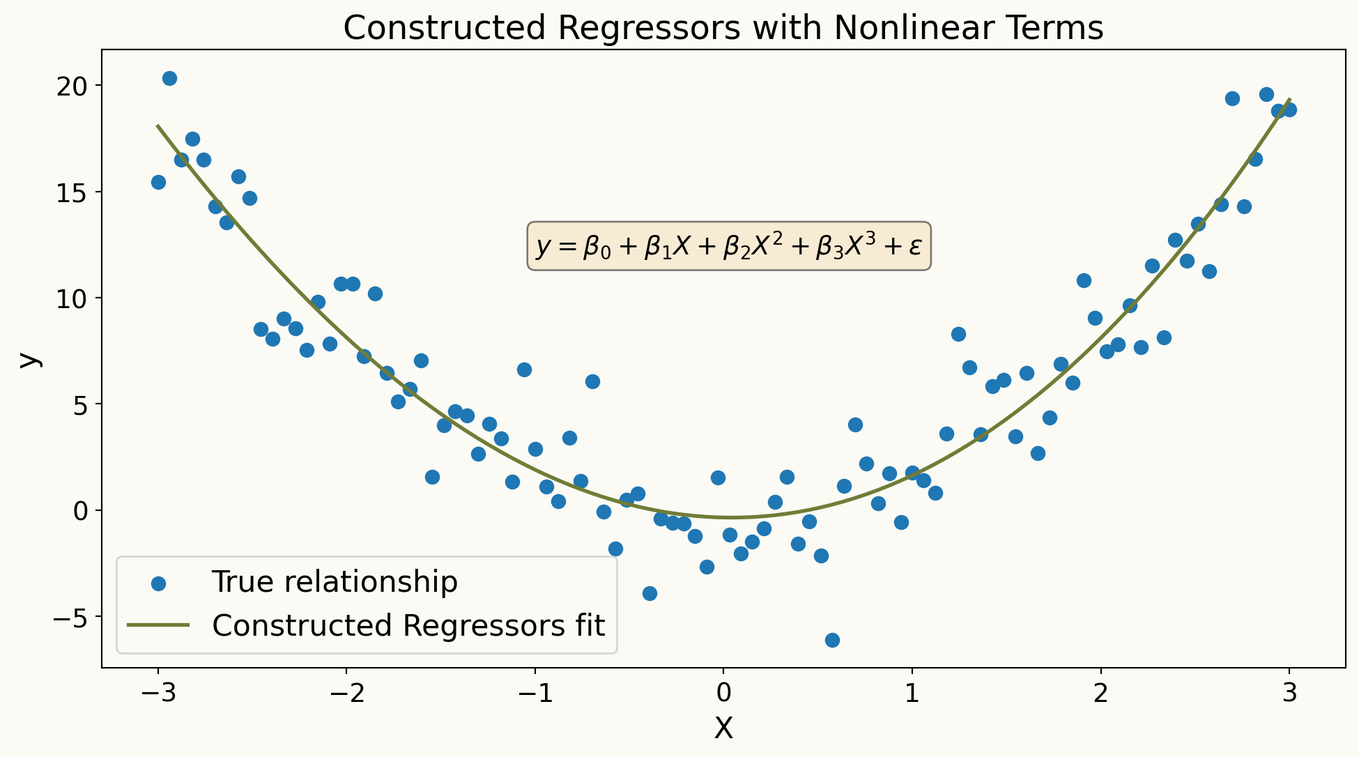 The model allows a part of the regression function, \(\color{#707C36}{g(W)}\), to be fully nonlinear