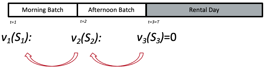 This equation can be solved backward or forward recursively. You get the value functions and at the same time an optimal policy at time \(t\)